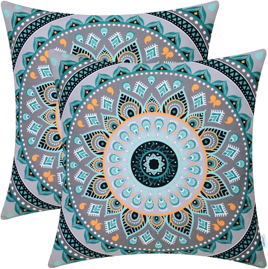 Amazon Com Calitime Pack Of 2 Soft Canvas Throw Pillow Covers Cases For Couch Sofa Home Decor Retro Mandala Pattern Compass Medallion 18 X 18 Inches Home Kitchen